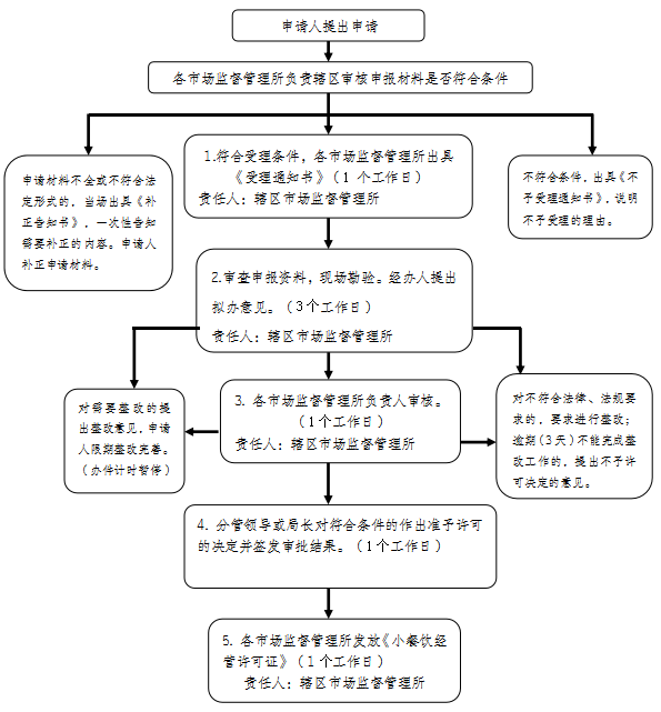 1.申请人提交申报资料→2.受理人审查资料→3.现场核查→4.审核人审核→5.审批人审批→6.制证发证