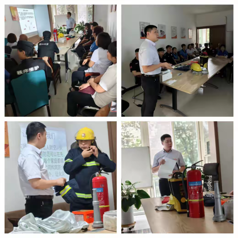 时代社区还联合武警小区物业对物业人员、网格员、应急小分队成员等进行了消防安全培训。在培训过程中,武警小区消防负责人为大家分析了火灾的成因和危害性、常见火灾原因,并结合本小区实际情况讲解了隐患自查重点、预防火灾的基本措施、初期火灾扑救方法等。培训中还现场展示了微型消防站内的各类装备,直观地学习掌握常见消防设备的使用方法,提升自救互救能力。