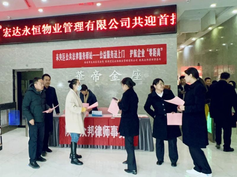 揭牌暨聘任仪式结束后,5场公益法律服务现场活动同时在楼宇一楼启动。顾问律师和工作人员累计发放首批驿站信息单、未央区三级公共法律服务体系宣传单1200余份,提供法律咨询服务180余人次。