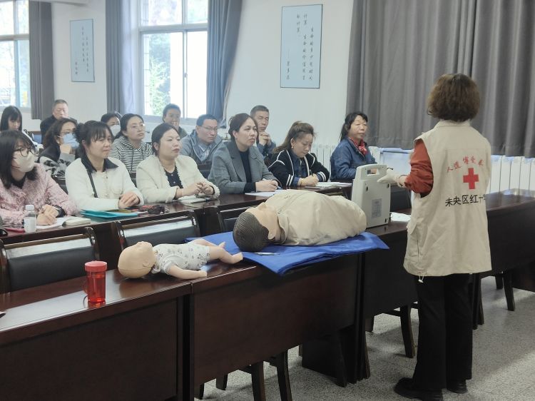 此次培训采用“1+1+1”模式,通过“理论讲授+现场演示+实践操作”的形式,培训老师用通俗易懂的语言向大家讲解了心肺复苏的重要性、基本流程、操作步骤以及操作要点,尽可能做到人人知晓,全员掌握。同时对自动体外除颤仪(AED)的原理、适应症状、操作标准以及注意事项进行了说明。