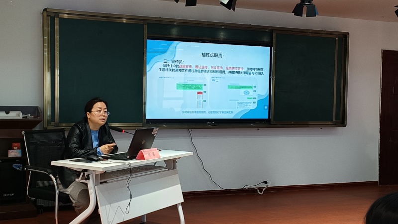 培训会上,吴芳书记重点围绕社区的含义、楼栋长职责、社区网格化工作开展情况及矛盾纠纷化解的方法和技巧等方面进行了详细讲解,通过案例分析、图文并茂的形式,让大家充分认识到楼栋长工作的重要性。