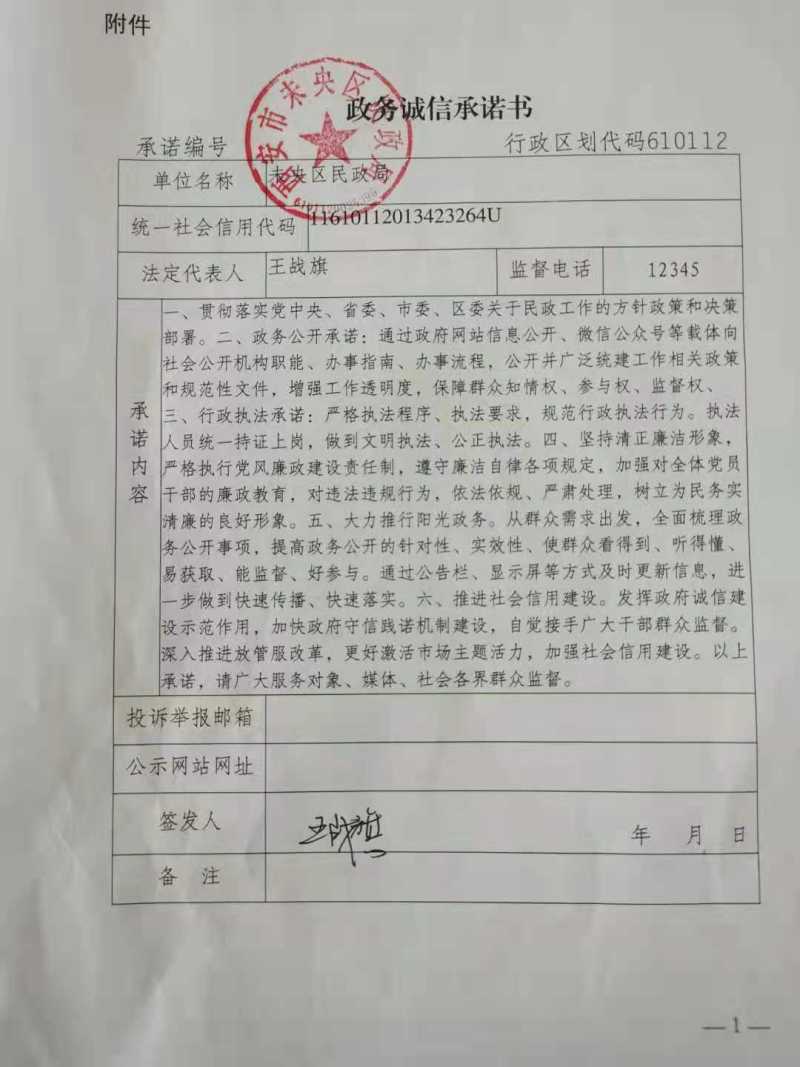 政务诚信承诺书