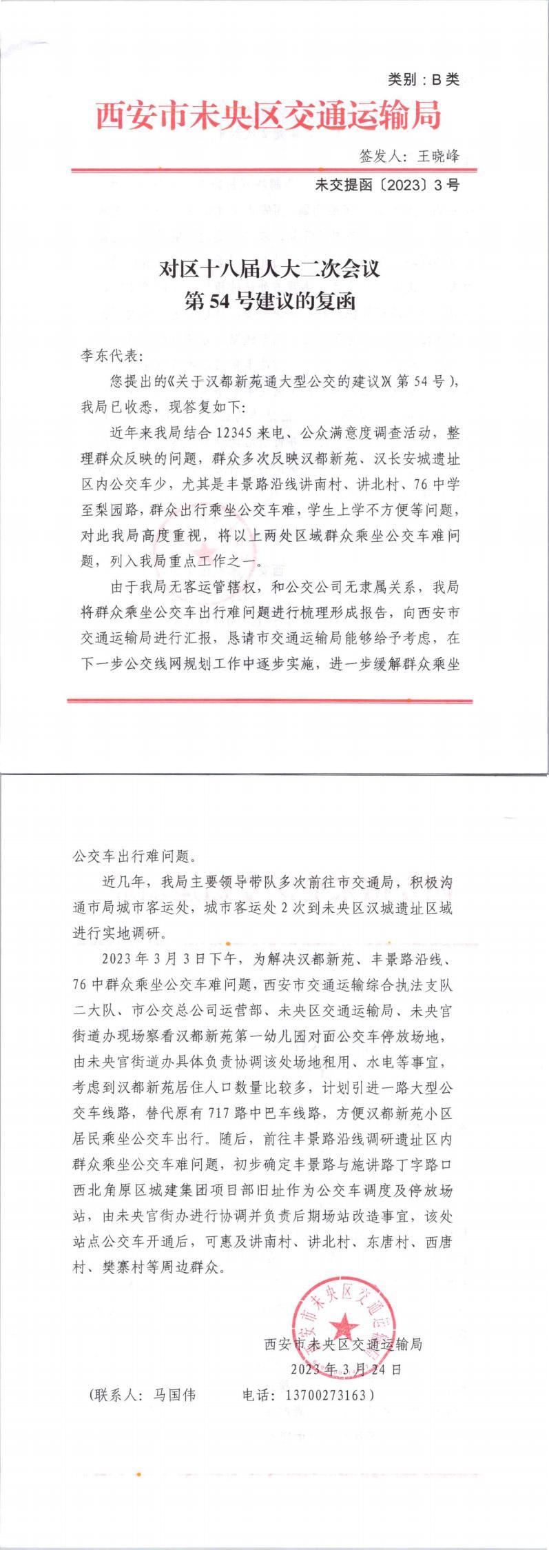 西安市未央区交通运输局对区十八届人大二次会议第133号建议的复函