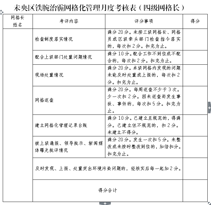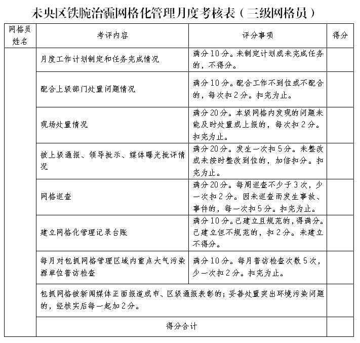 2.未央区铁腕治霾网格化管理月度考核表(四级网格