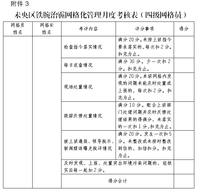 3.未央区铁腕治霾网格化管理月度考核表(四级网格员)