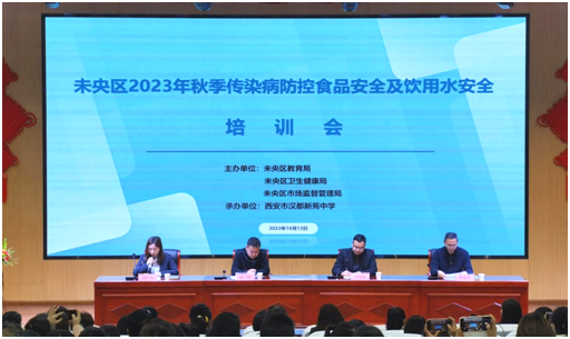 为进一步加强全区学校、幼儿园传染病防控、食品安全及饮用水安全工作,保障广大师生的身体健康,维护学校、幼儿园正常的教学生活秩序,10月12日上午,全区教育系统2023年秋季传染病防控、食品安全及饮用水安全工作培训会在西安市汉都新苑中学顺利召开。