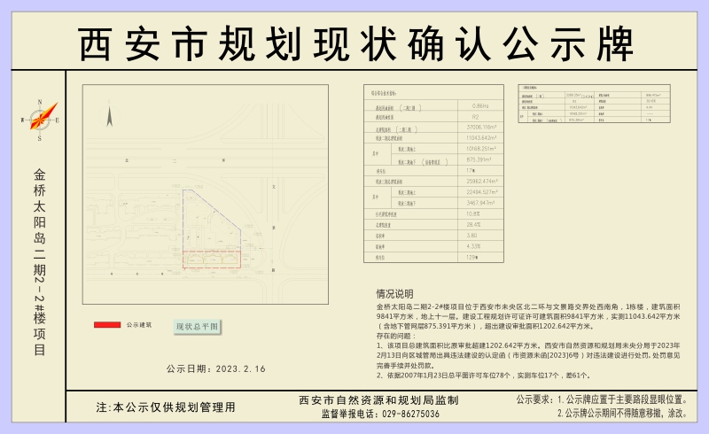 西安市规划现状确认公示牌(金桥太阳岛二期2-2#楼项目)