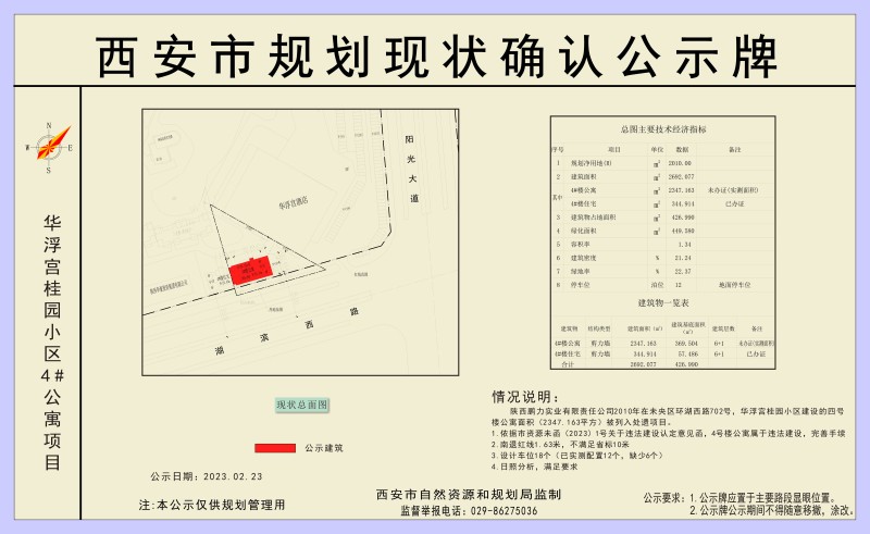西安市规划现状确认公示牌(华浮宫桂园小区4号楼公寓项目)
