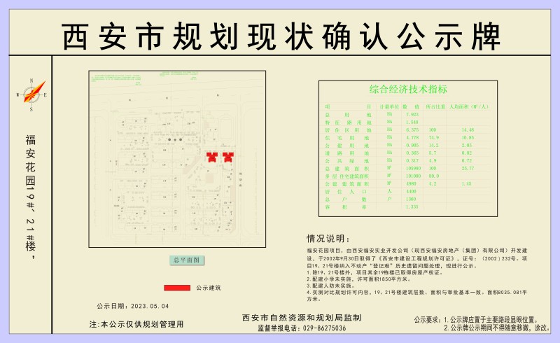 西安市规划现状确认公示牌(福安花园19#、21#楼)