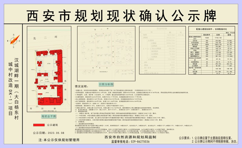 西安市规划现状确认公示牌(汉城湖畔一期大白杨东村城中村改造DK-1项目)