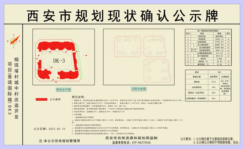 西安市规划现状确认公示牌(帽珥塚村城中村改造开发项目香颂国际城DK3 )