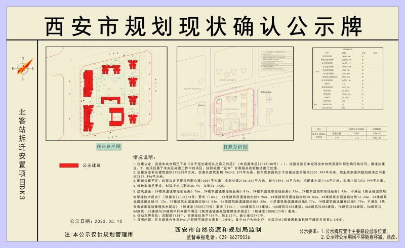 西安市规划现状确认公示牌(北客站拆迁安置项目DK3)