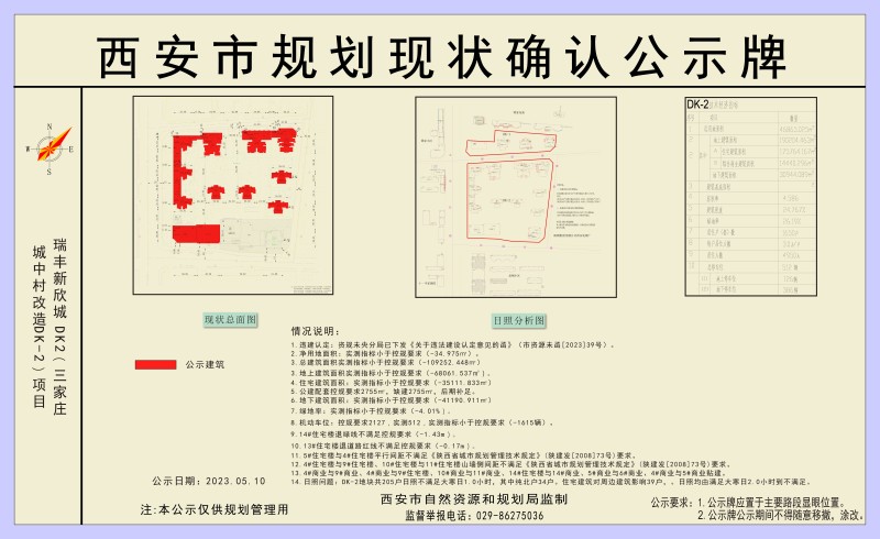 西安市规划现状确认公示牌(瑞丰新欣城DK2三家庄城中村改造DK-2)项目