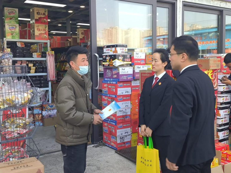 座谈会上,王峥伟庭长从汉代法治故事“约法三章”引出社会主义核心价值观“诚信”,并结合《中华人民共和国民法典》以及其他相关法律法规,解读了经营者所应承担的责任义务,从情、理、法多维度引导,给商户树立“以今日之信,创明日之业”的社会责任意识。唐楠楠法官结合司法实践中“知假买假”案例,倡导广大经营者依法依规诚信经营,自觉抵制假冒伪劣商品,让消费者买得放心、用得舒心,共同促进消费市场健康发展,提振消费信心、释放消费活力。随后,法官和司法所工作人员走访了30余家副食品批发商户,发放普法资料100余份,面对面向商户普及《中华人民共和国消费者权益保护法》《中华人民共和国食品安全法》等消费者权益相关法律知识,并深入了解商户经营现状,倾听他们在经营中遇到的法律困惑和问题,精准解答法律咨询10余次,引导商家依法、诚信经营。商户纷纷表示,希望多开展这样“接地气”的普法宣传。
