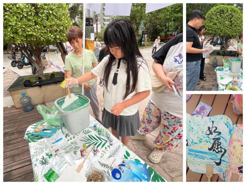 非遗文化进社区,零距离体验“手作之美”。青橙美学的“非遗漂漆”扇面吸引了现场大朋友、小朋友的目光。漂漆,又称“流漆”或“泼漆”,是一种将天然漆料通过特殊手法涂抹在物体表面,利用漆液的自然流动和色彩的交融,形成独一无二的艺术效果的传统工艺。