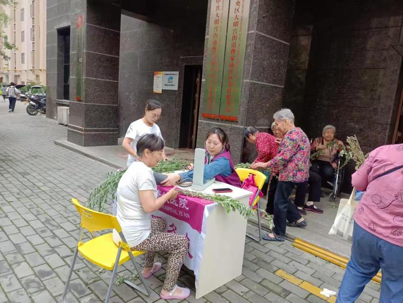 为弘扬优秀传统文化,6月6日上午,大明宫街道曹家庙社区养老服务站开展“浓情端午艾叶香 五彩编绳送安康 ”主题活动。养老服务站现场为老人们免费测量血压,提供健康咨询和用药指导。同时,联合社区工作人员为老人们免费发放艾草,为他们系上五彩绳,祝福老人平安健康!