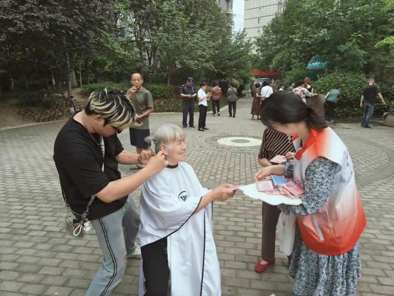 活动中,社区组织志愿者为辖区60岁以上老年人免费理发,帮助居民免费清洗地毯等,让社区居民群众感受到社区大家庭的温暖。