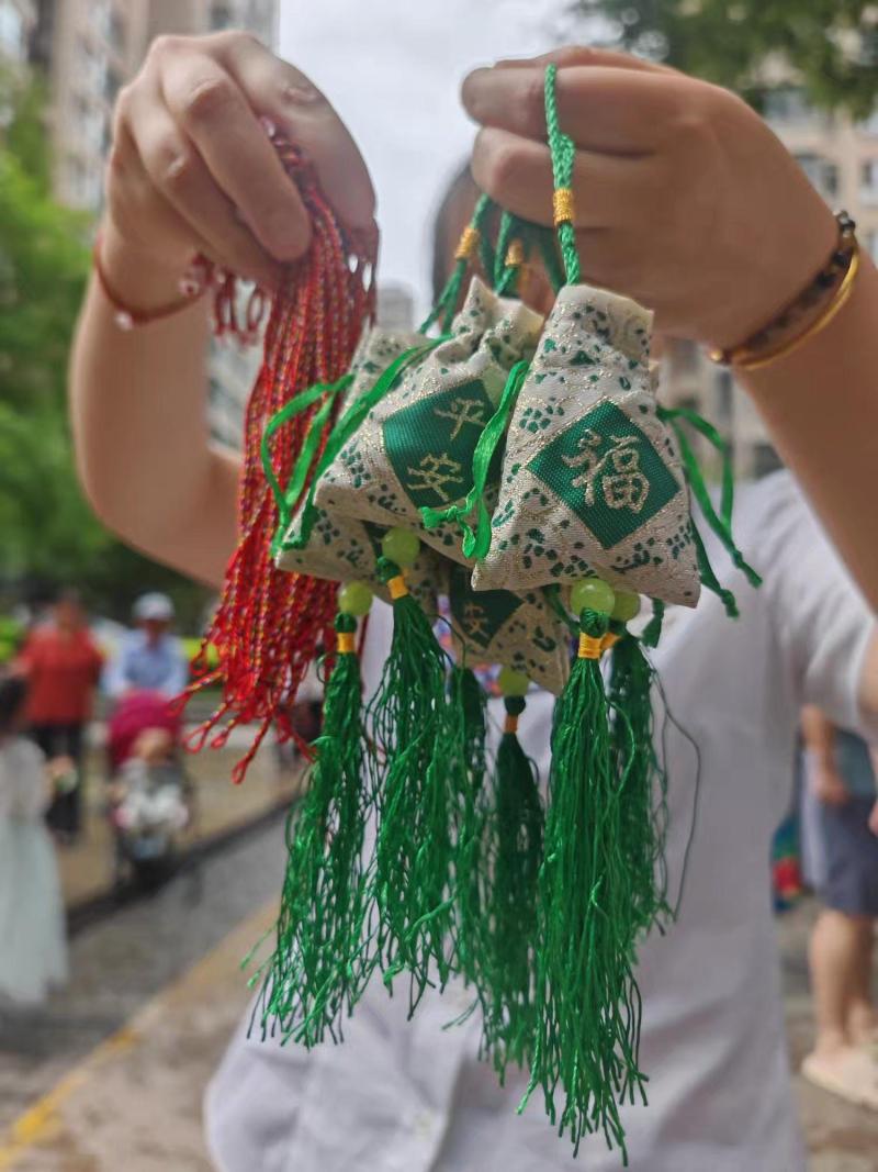 居民们一起包粽子,话家常,营造了浓厚的节日氛围。端午佳节,承载着中医药文化智慧的香囊必不可少,更有象征吉祥的彩绳挂在腕边。活动现场热闹非凡,由社区工作者、物业管家、退役军人组成的志愿服务队全程维持现场秩序,为居民幸福安康保驾护航。