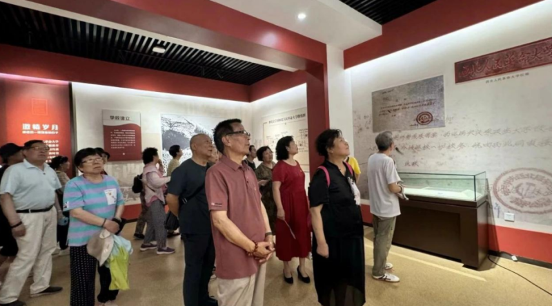 在西北人民革命大学旧址博物馆,老党员们仔细参观了每个展区,深入了解西北人民革命大学的历史沿革、办学特色以及革命先烈的英勇事迹。通过珍贵的历史照片、文献资料和实物展示,大家了解了西北人民革命大学光荣的发展历程和丰厚的文化底蕴,接受了一次深刻的革命传统教育和爱国主义教育洗礼。老党员们神情专注,不时驻足凝视,似乎在与历史对话,心中激荡着对革命先辈的无限敬仰。