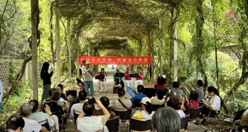 参观结束后,社区组织了一场“红歌音乐会”。安城社区合唱团热情伴奏,老党员们尽情地展示自己,通过一首首红歌表达自己对党和国家的赞美——《南泥湾》《社会主义好》……紧接着,安城社区党委书记和老党员们同唱《没有共产党就没有新中国》,安城社区工作人员献唱《学习雷锋好榜样》。一首首耳熟能详的歌曲,一声声真情切意的表达,大家以歌传情,以歌明志。