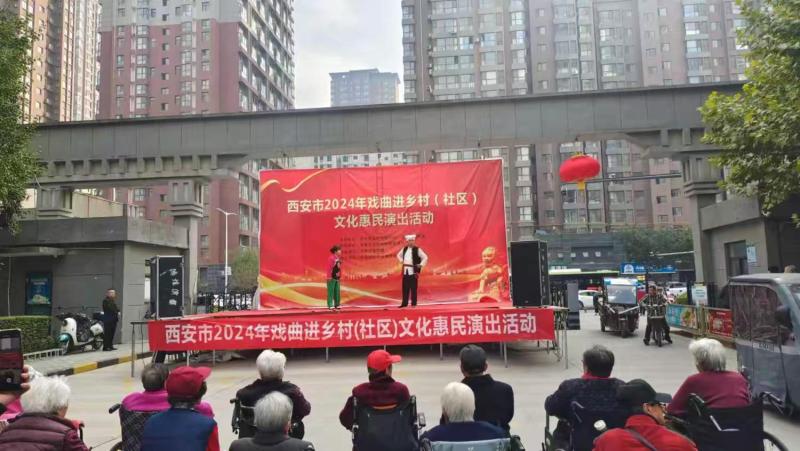 为活跃群众文化生活,弘扬传统戏曲文化,10月25日下午,“2024年西安市戏曲进乡村(社区)惠民演出”走进大明宫街道泰和居社区。此次演出活动,将舞台搭到群众家门口,以群众喜闻乐见的方式,把欢乐送到群众心坎上。