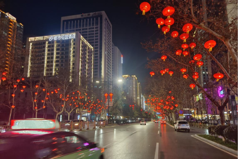 未央区城管执法局以传统灯笼、LED串灯为街景,分别在未央路(龙首北路-延和西巷)、龙首北路西段(未央路-永祥路),凤城八路(贞观路-太华路,太华立交转盘)沿线树木悬挂60cm,15瓦大红绸布灯笼,共7725套。红红火火的大红灯笼,与流光溢彩的夜色相得益彰,让年味在城市的流动中升腾。