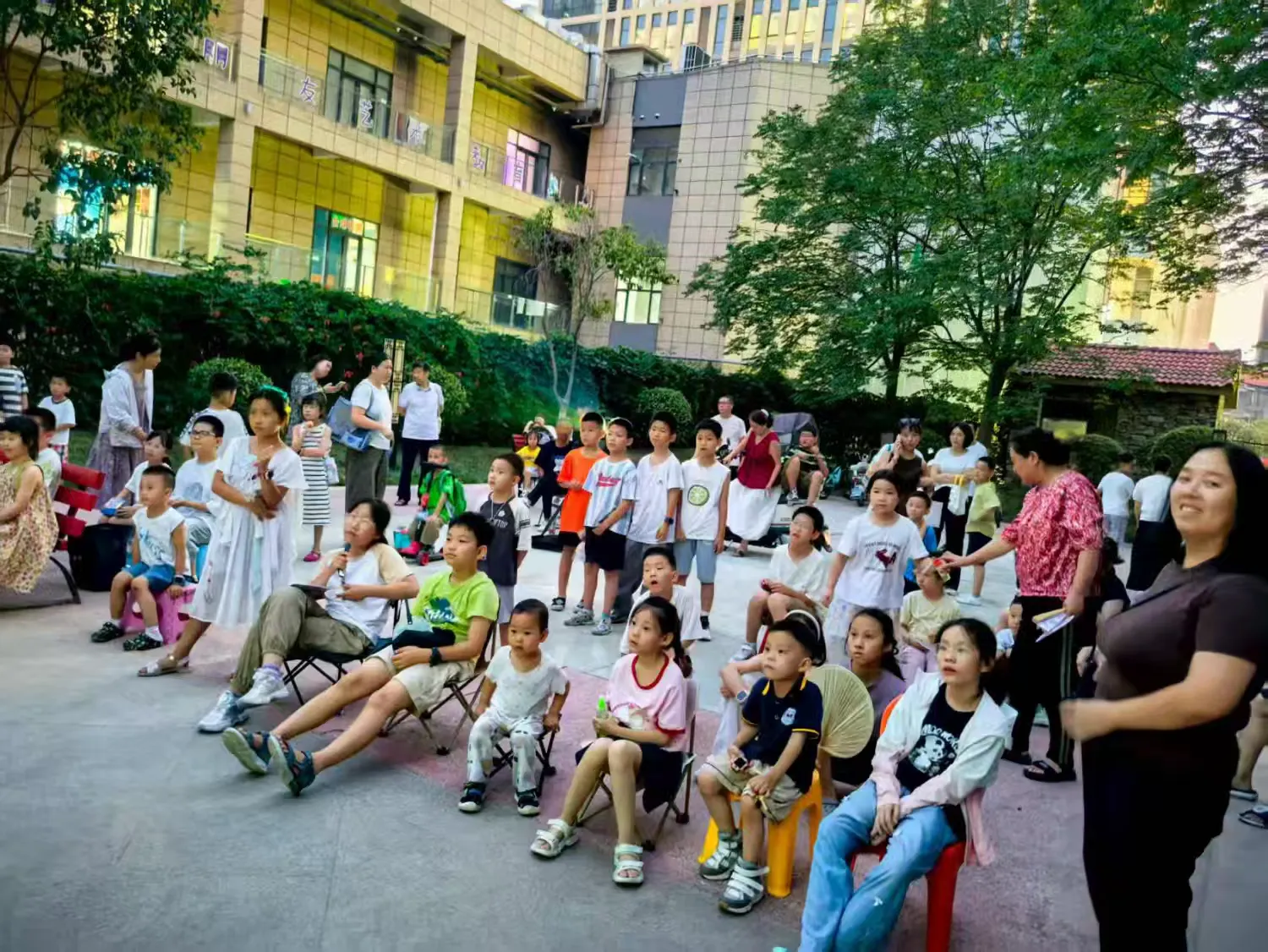 当夜幕降临,居民们陆陆续续来到西门露天广场,晚风拂面,星空做伴,邻里无间,纵享美好。在这个夏夜里,放映机与幕布成为了故事的传递者,而更重要的是,它们也成为了邻里间情感交流的桥梁。