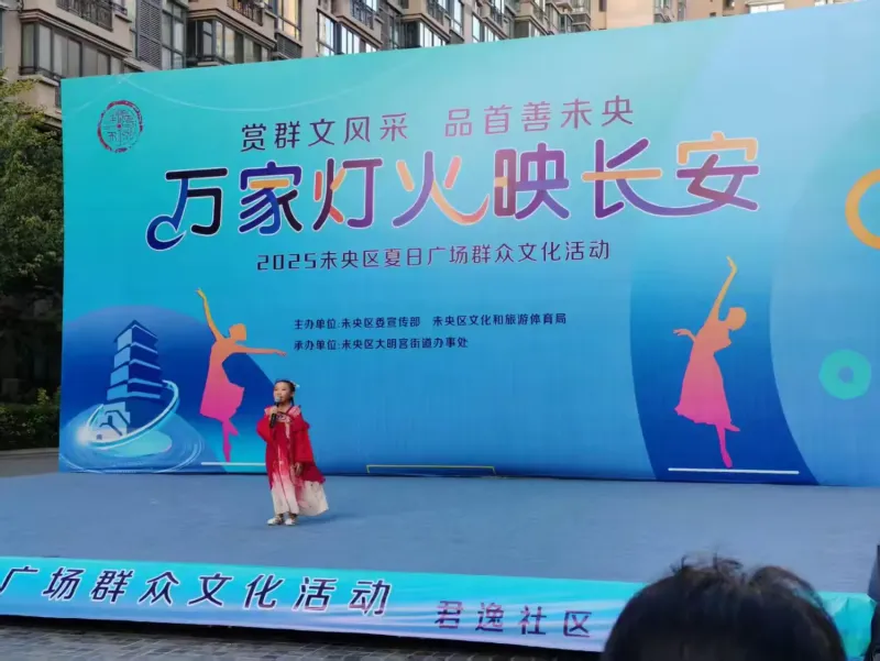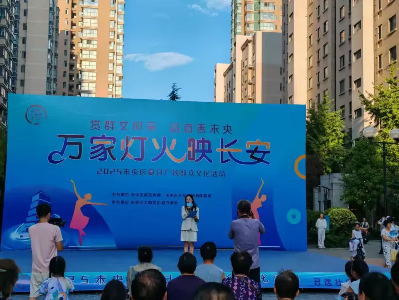 2025年8月19日18:00由未央区委宣传部、未央区文化和旅游体育局主办,大明宫街道办事处承办的"万家灯火映长安"2025未央区夏日广场群众文化活动在君逸社区举行,为市民们带来了一场精彩纷呈的文化盛宴,通过丰富多彩的群众文化活动,展现未央区"首善之区"的文化魅力,让万家灯火共同点亮长安的夜空。