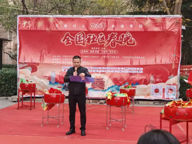 2025年11月26日,以“万家灯火幸福家园”为主题的2026年全国社区春晚首场海选,在西安市未央区大明宫街道先锋社区隆重启幕。活动由先锋社区志愿者团队和爱心志愿者陕西西安智慧国学服务队18人协同13支社会文艺团队共200余人联合呈现。活动汇聚支持单位代表、专业评委及社区文艺爱好者,25个精彩节目轮番登台、亮点纷呈。