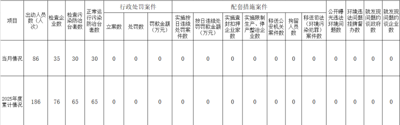 西安市生态环境局未央分局环境执法工作动态信息统计表(2025年2月)