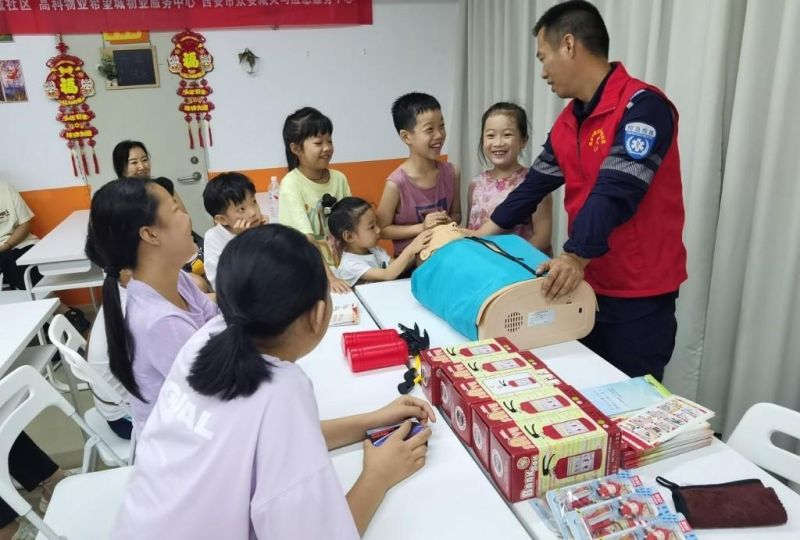 8月6日,谭家街道紫薇希望城社区“微光”志愿服务队联合西安市众安减灾与应急服务中心开展“人人讲安全,个个会应急”暑期安全教育活动。孩子们在志愿者引导下,通过情景模拟、实操体验等趣味互动,掌握了火灾逃生、急救处置等实用安全知识。