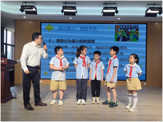 唐律师通过互动提问、有奖竞答、情景剧演绎的方式为学生们普及了宪法、刑法、民法典、行政法、交通法、教育法、妇女与儿童权利保护法和未成年人保护法,还教会了同学们如何正确对待校园欺凌事件,引导他们在日常生活中自觉做到知法、懂法、守法、用法,共同用法律知识筑起“保护墙”。通俗易懂的语言、形象生动的案例、争相问答的氛围,法治的雨露不知不觉间已浸润学生的心田。