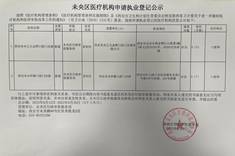 医疗机构申请执业登记公示