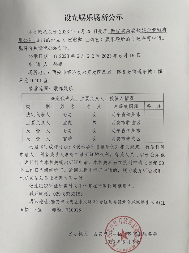 设立娱乐场所公示