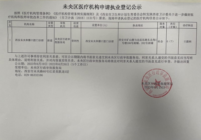 未央区医疗机构申请执业登记公示