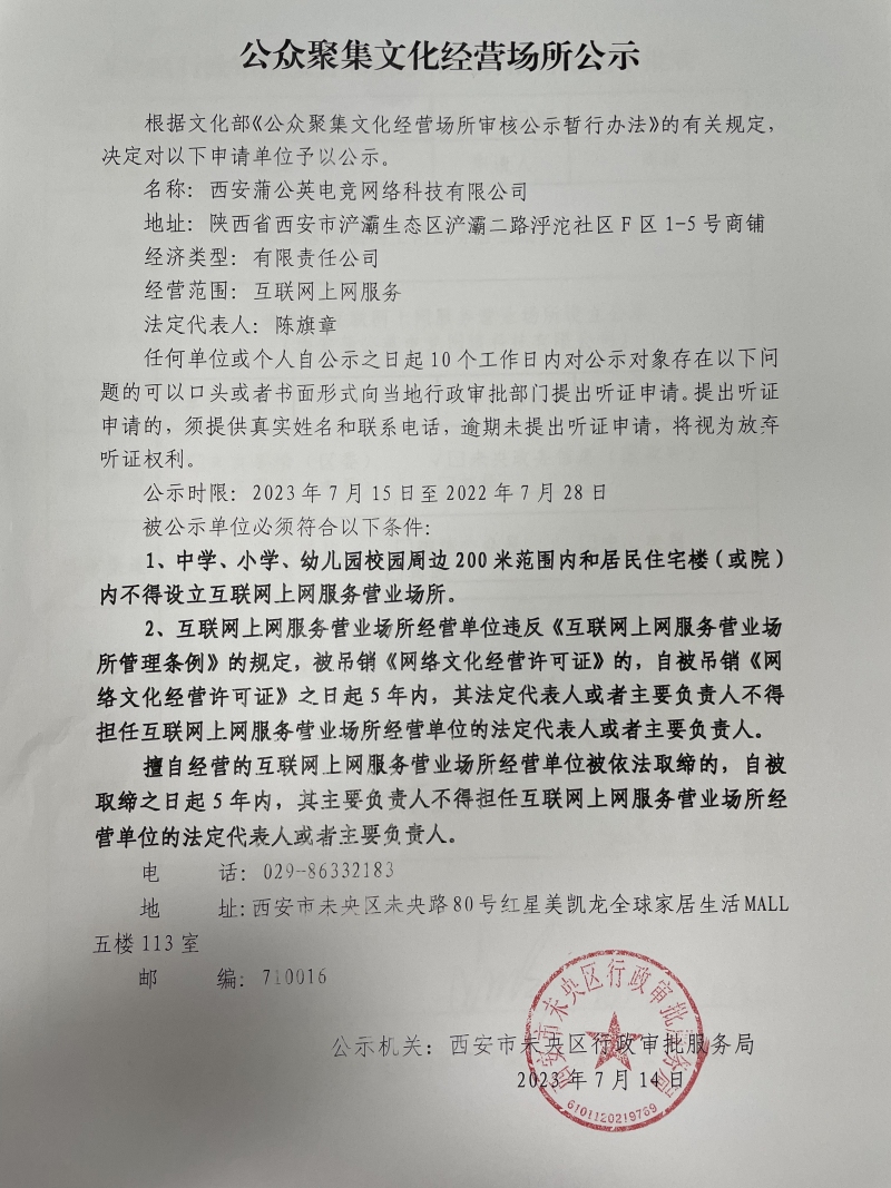 公众聚集文化经营场所公示
