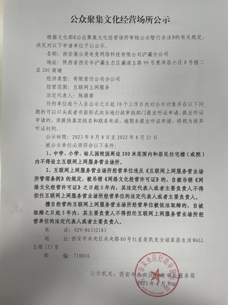 公众聚集文化经营场所公示