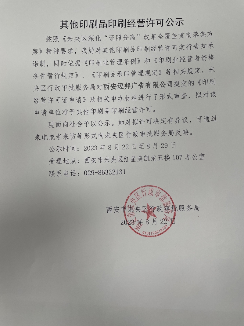 其他印刷品印刷经营许可公示
