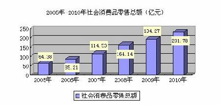 商贸 全年实现社会消费品零售总额231.78亿元,比上年增长19.6%。从销售总量看,批发业实现销售额309.4亿元,比上年增长27.6%;零售业实现销售额220.8亿元,比上年增长19.6%;住宿业实现营业额3.6亿元,比上年增长23.4%;餐饮业实现营业额14.3亿元,比上年增长23.7%。